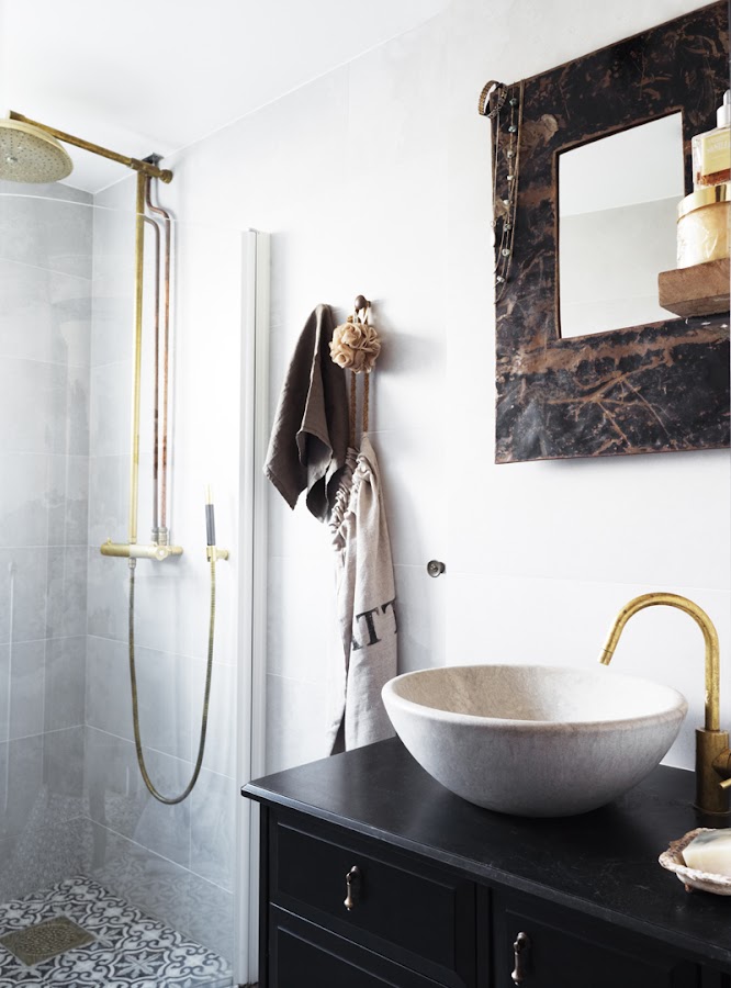 De todas las duchas que nos propone Mi rincón de sueños en su post "Baños con ducha... Cambiar la bañera", me quedo con este porque podríamos adaptarlo a cualquier minipiso de ciudad. Si quieres conseguir el look apunta estos detalles.