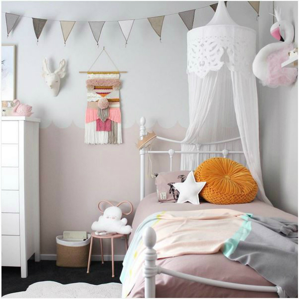 Si hace unas semanas os enseñaba habitaciones de niños con colores vivos sobre blanco, ahora toca habitaciones con menos color, tonos más pálidos, pasteles o empolvados. Habitaciones más dulces y serenas, pero eso sí, que no falte el color tan importante para el desarrollo infantil y ese puntito de locura a la hora de decorar. Y en estos días de frío invierno qué mejor que alegrarnos con estos espacios dulces y mágicos y empezar la semana de manera optimista.