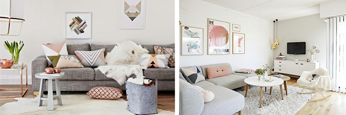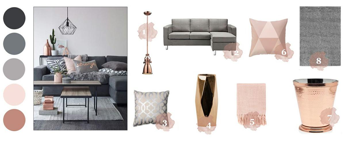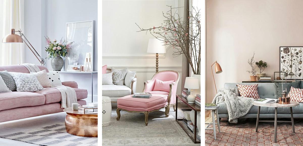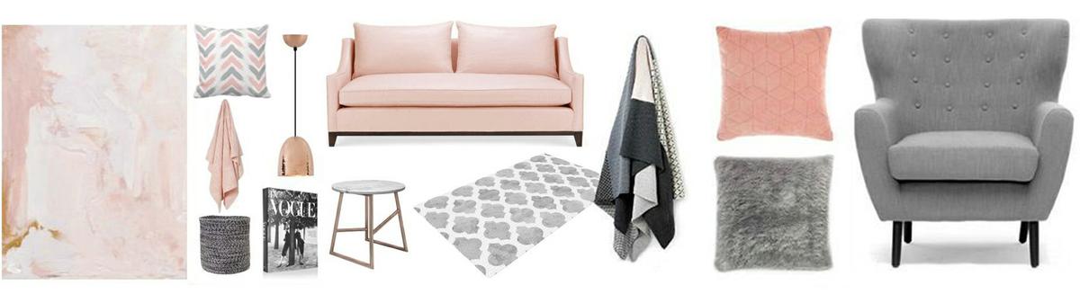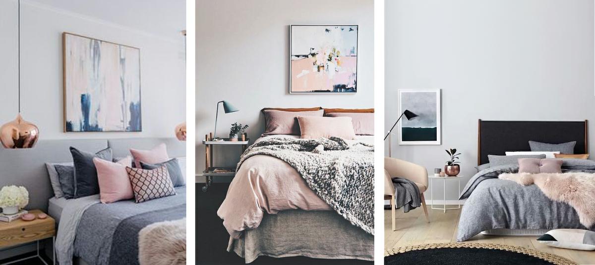 Una de las tendencia en tonalidades para decoración de interiores es precisamente esta: gris y rosa junto con el dorado o cobre para enfatizar.