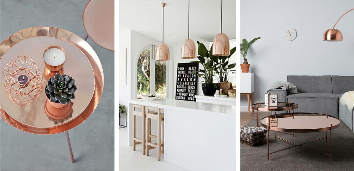 EL COBRE: posee un brillo rojizo y aporta un toque vintage e industrial. El cobre combina prácticamente con cualquier color y aporta mucha personalidad.