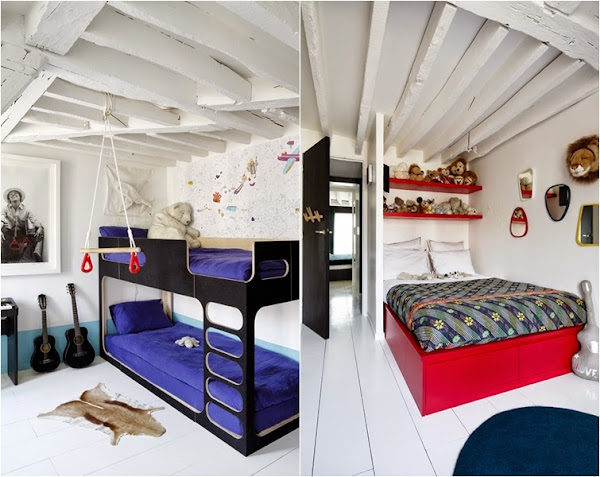 La vivienda está situada en París (como no) y pertenece a la restauración de uno de esos maravillosos edificios centenarios de la ciudad. El azul y el amarillo rompen con la base en blancos y negros, y le da vida y color a toda la casa. Últimamente, que no paro (Coralia) de buscar inspiración e ideas para dormitorios juveniles (tengo ganas de cambiar el de mi peque), la verdad es que la DECO de los dos que veréis más abajo, me ha parecido un acierto. Os gusta?