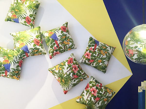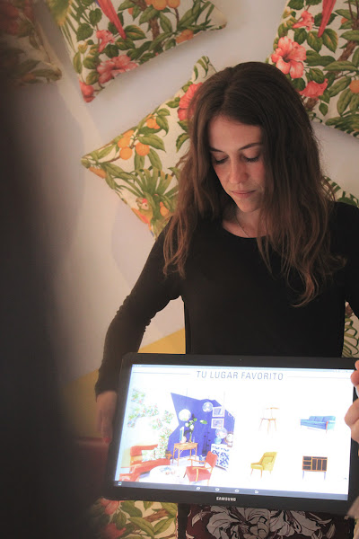 El concepto de La selva de los cojines me pareció muy divertido, y una manera sencilla y eficaz de entender el espacio. Y es que los elementos que han llegado a las esferas, y que están en la nube, lo cierto es que antes estaban en el suelo, digamos. Fuera del mundo online. Ese desfile incesante de cojines que recorren las paredes de suelo a techo, nos conduce la mirada arriba y abajo, reforzando la idea que está detrás de todo el conjunto... Original, verdad??