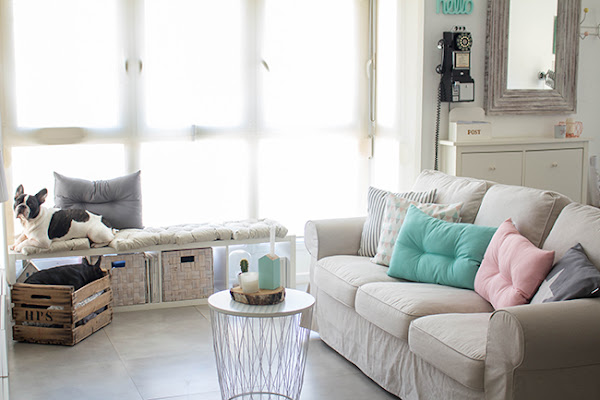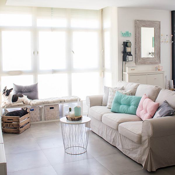 Quería hacer un cambio total y aproveché las novedades de la shop para darle un buen repaso a toda la decoración. Los colores pastel son de mis favoritos y tengo que reconocer que esta colección lo tenia TODO para que encajara con el nuevo aire que quería darle al salón. No sé si es la primavera, el calor o que me he cansado de los tonos oscuros pero buscaba ante todo MUCHA LUZ, seguro que eso te ha pasado alguna vez de buscar lo opuesto a lo que teníais.