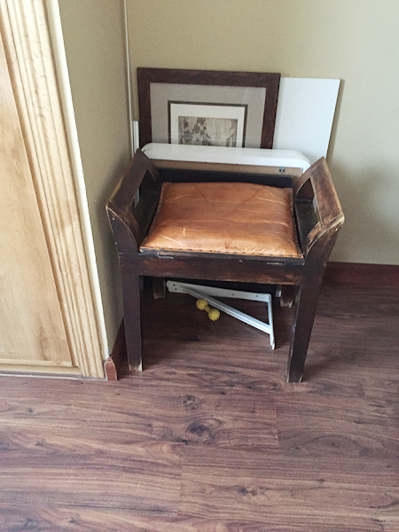 Comenté con Cristina la posibilidad de pintar el espejo y la descalzadora y ella, sin rechistar, se puso a trabajar para darle una nueva oportunidad a estas dos piezas. Con un poco de pintura y una tela diferente, ha conseguido un par de muebles nuevos y sin mucho gasto.