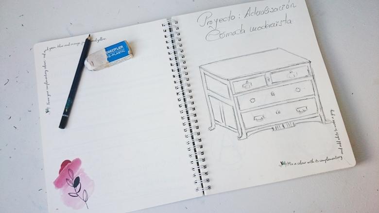 Primero hablamos de su idea y cuando ya teniamos claro por donde iba su idea,le envié unas cuantas propuestas inspiradoras.Sabiendo ya lo que quería teniamos todas las piezas en el taller pero nos faltaba la cómoda. Y tras una busqueda dimos con esta pieza de estilo modernista que me pareció preciosa y con carácter.Le envié fotos de la cómoda en su estado original y tuve su aprobación.Ya sólo quedaba ponernos manos a la obra y materializar la idea.