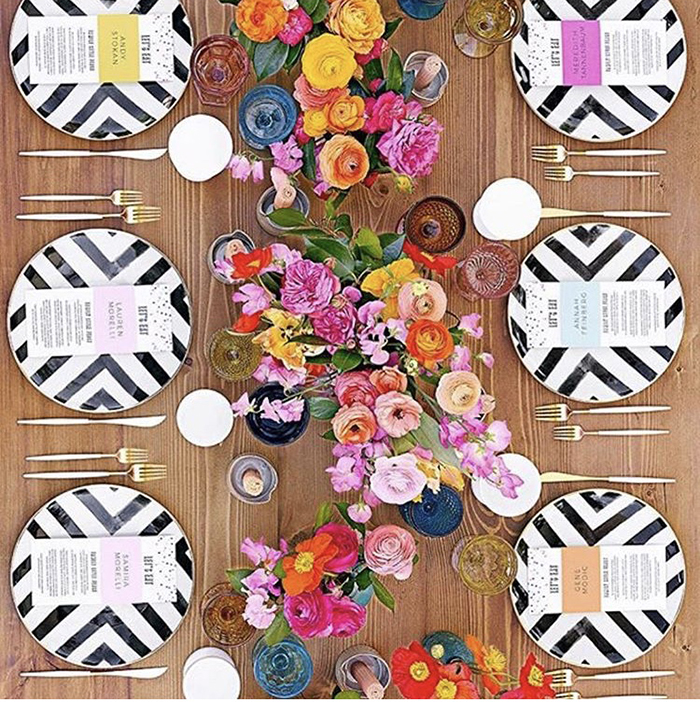 Soy fan de las vajillas un poco más especiales, copas y vasos de colores y detallitos variados que puedan sorprender a los invitados.