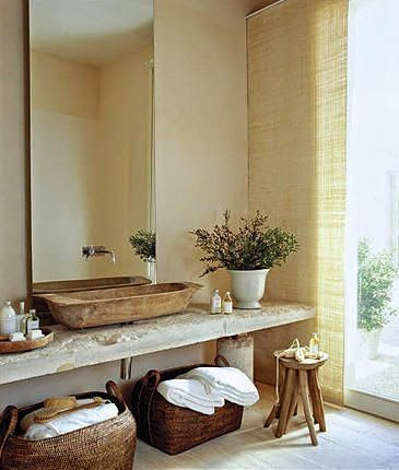 >> Añade energía de madera al baño: elementos decorativos, plantas y toallas en tonos verdes.