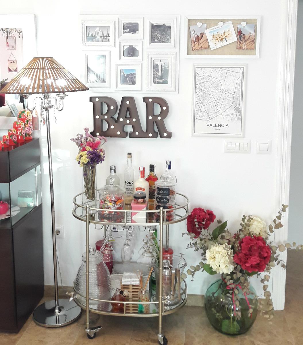Estoy haciendo pequeños cambios en el salón comedor y he modificado un poco la zona de bar. Recordareis que antes la tenía en la pared fucsia (y sino echadle un ojo al post Es la camarera de mi amor) y la verdad es que quedaba muy chula.