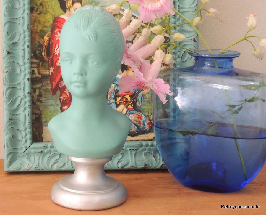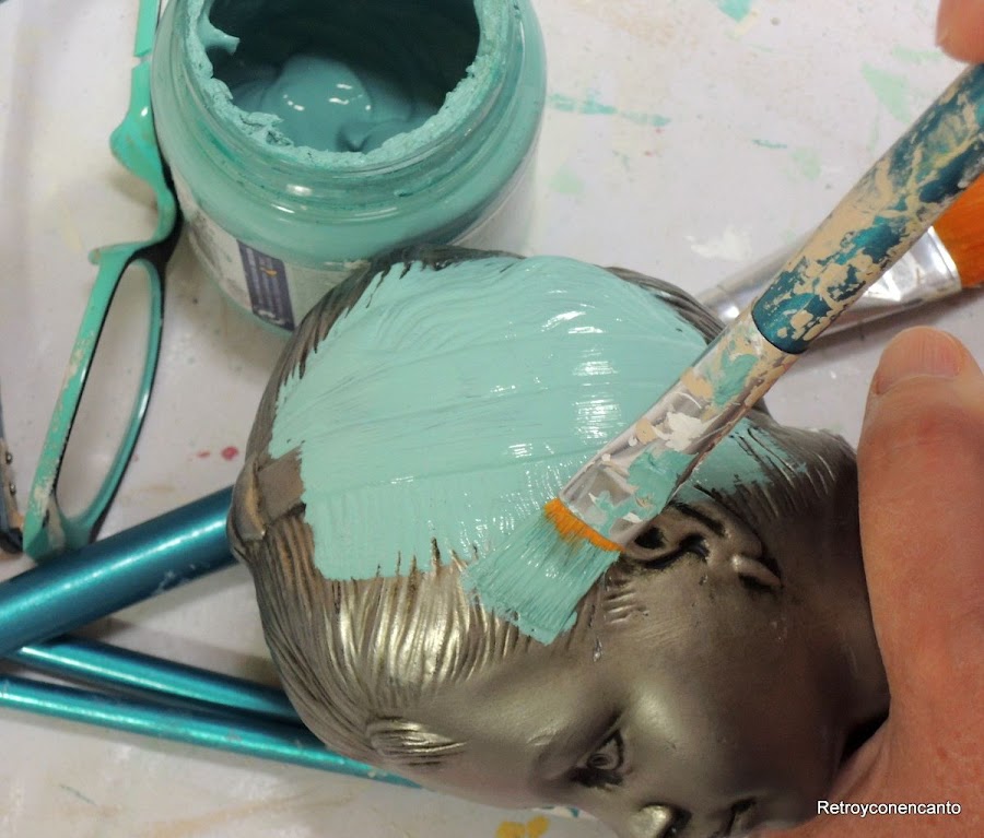 Evidentemente, había que darle un buen retoque, porque el plateado brillante y el negro de la base, aparte de estar bastante arañado, no nos entraba por el ojo. Verde hielo daría vida y alegría a la carita de nuestra rapaza.