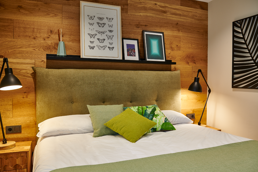 Por último, tenemos el Cabecero de tejido Ecolife en tono caliza. La combinación del tono piedra con el blanco de las paredes, el suelo de madera claro y el minimalismo de la decoración nos transmite una habitación con muchísima luminosidad y amplitud.