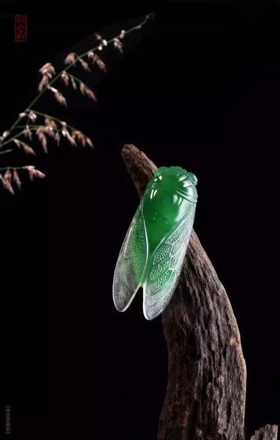 Según la tradición oriental la cigarra de jade acompaña al fallecido en su viaje hacia el cielo.