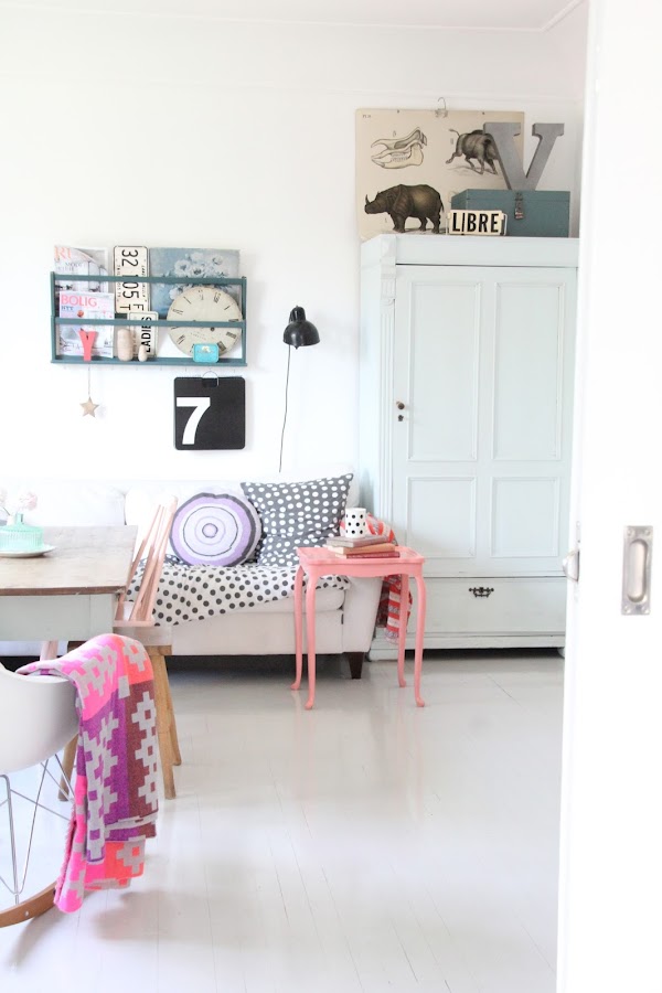 ¿Os atreveriais a que vuestro salon girara en torno al rosa? Pues lejos de parecer algo cursi... (vale, y aunque no vaya con muchos) esta mesita o la silla de color rosa, se han convertido en ese detalle fundamental para una estancia muy personal y un estilismo delicado.