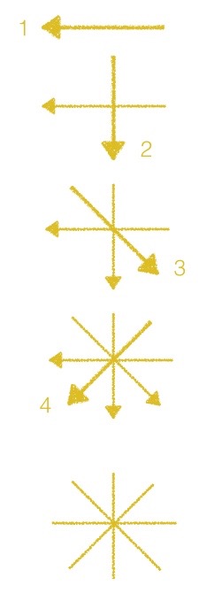 Tienes que trazar el símbolo sol, en el aire, en cada una de las habitaciones de tu hogar desde la puerta de entrada. Siguiendo el orden de los trazos que te muestro a continuación: