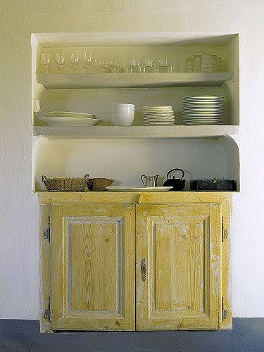Estanterías integradas en los muros,muy habitual el las casa antiguas del sur se han respetado aportando encanto y sencillez a la vez. Denominador común de toda la vivienda.