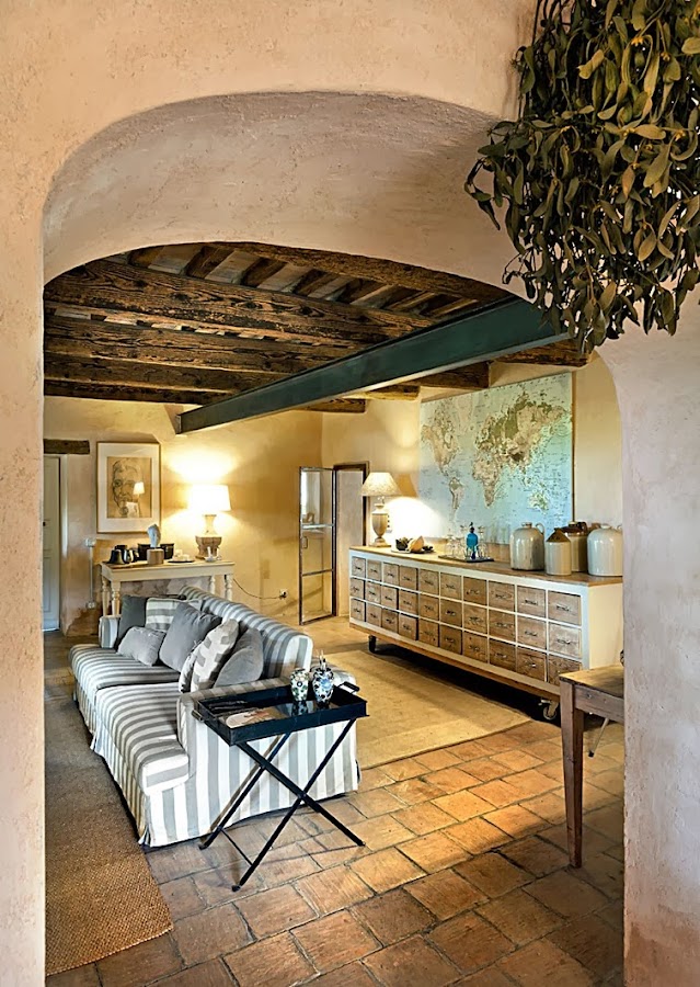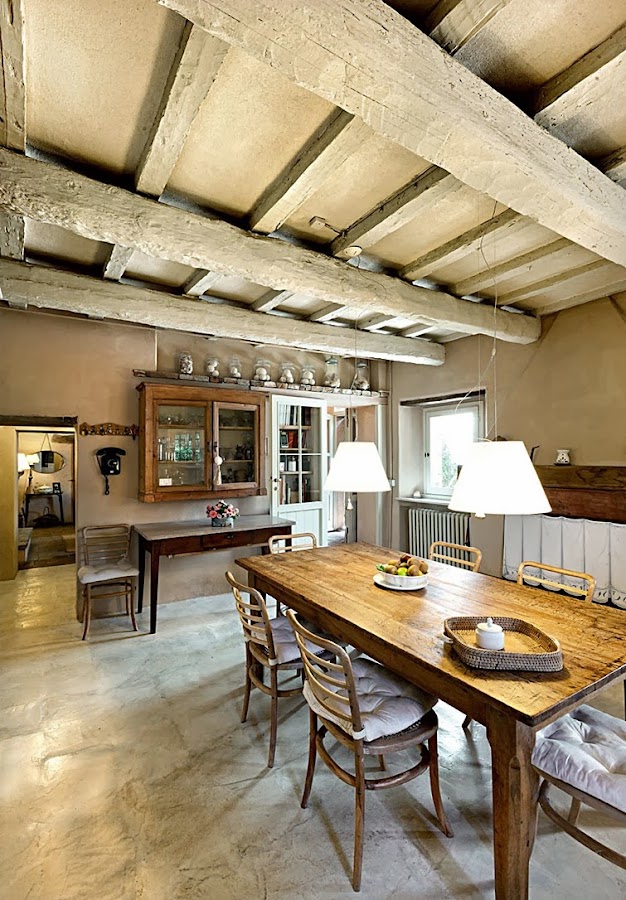 Nos gusta variar de estilo, y de cuando en cuando le toca a los interiores rústicos. Aquí va una casa fantástica, muy chic, proyecto del ingeniero Alessandro Donati, con cuarenta años de experiencia profesional en el campo de la vivienda, junto con la firma de mobiliario Le Muse Arredo d?Interni.