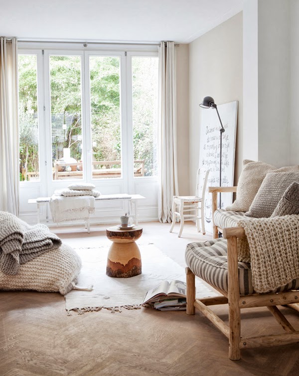 Me encanta esta vivienda, la luz que desprende, la mezcla de estilos (con predominio de piezas vintage y estilo escandinavo) y ese maravilloso suelo de madera natural me parecen todo un acierto. No es fácil conseguir un resultado así, hay que saber elegir muy bien cada pieza y combinarla, para lo que una base neutra es esencial y no recargar el espacio. Y esta es mi parte favorita de la vivie ...