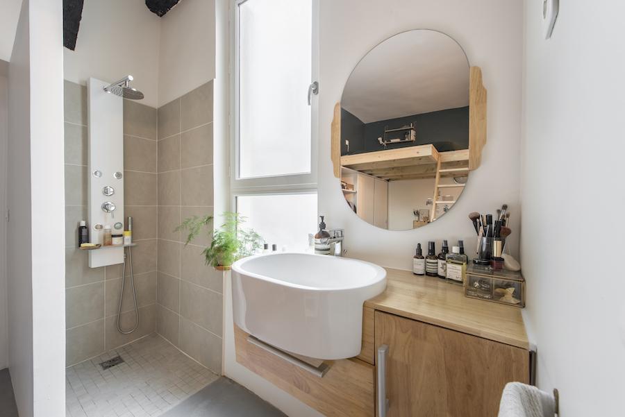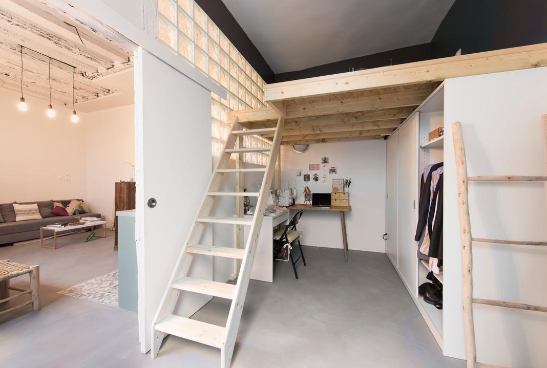 Un mini-loft parisino de 35 m², que presenta un ambiente minimalista cálido. El uso de diferentes materiales y texturas como son el microcemento para su pavimento, la madera y los elementos arquitectónicos que han sido utilizados, crean contrastes y cálidez. La esencia de este loft la encontramos en un bonito juego de estructuras y materiales.