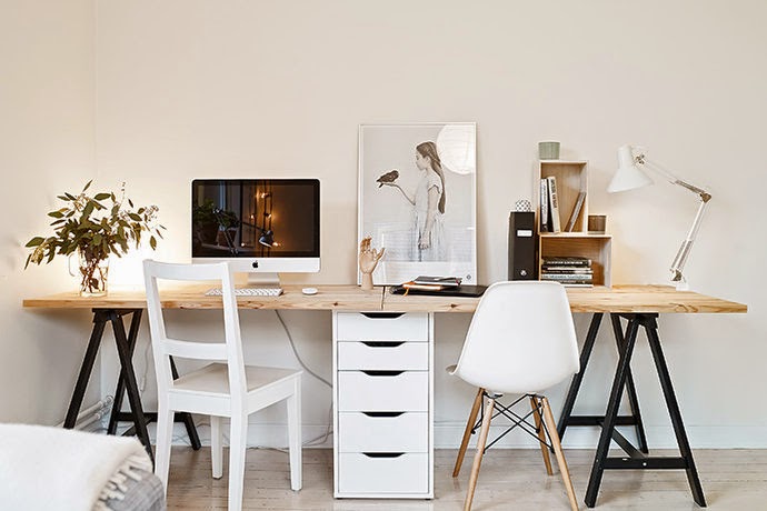 He puesto una mesa grande para compartir y buscaba como decorar el escritorio para que el resultado sea ligero y a la vez bonito. Encontré una selección de fotos muy interesantes que comparto aquí con vosotros por si os es de utilidad.