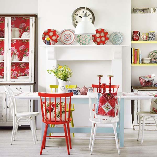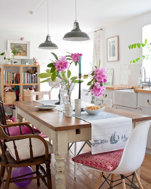 La presencia de flores también muy característica de este estilo. Naturales o artificiales. En tejidos estampados, papeles vinílicos o cuadros.