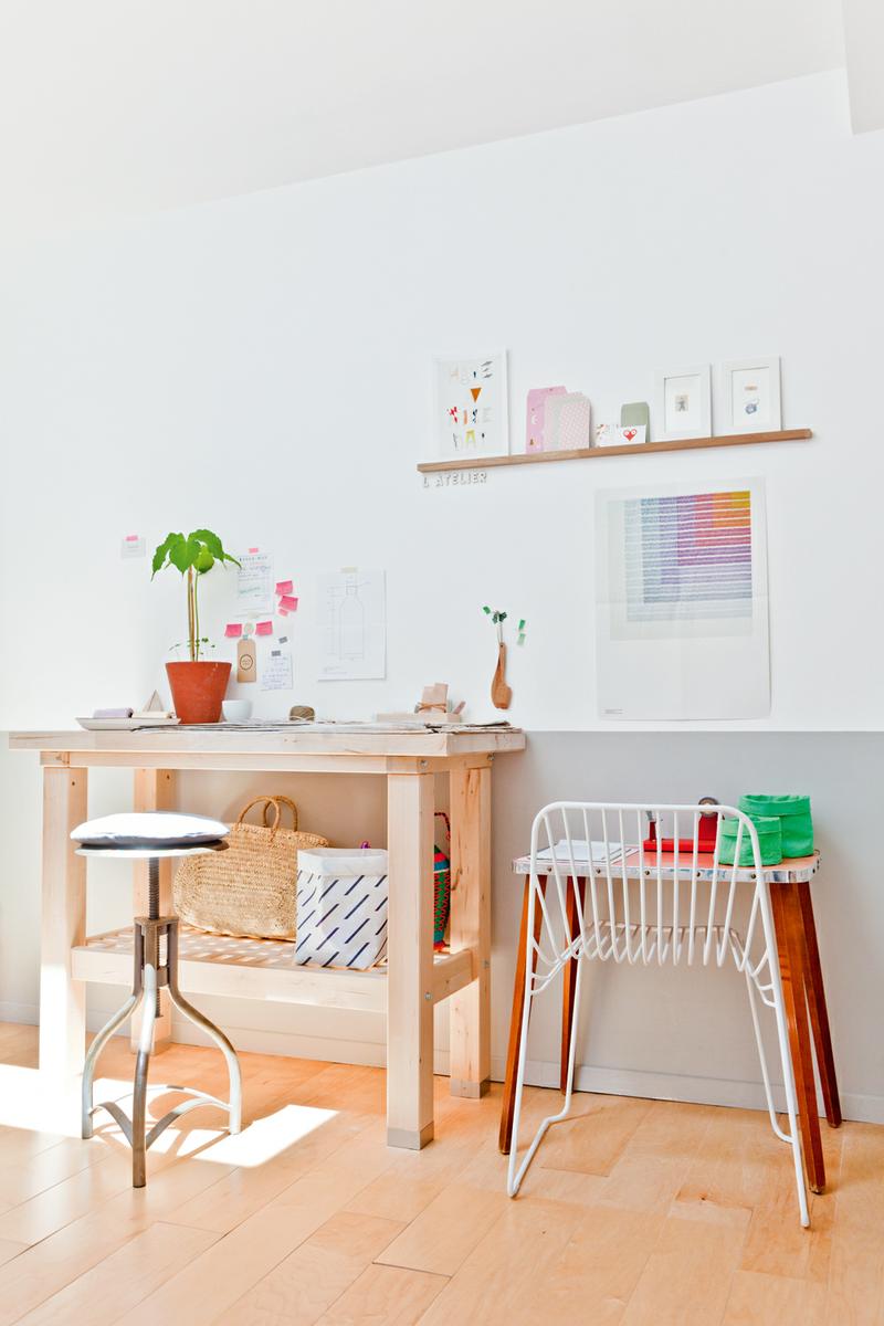 Caroline es diseñadora gráfica y una artista de los pies a la cabeza, por lo que no puede ser mejor lugar que su casa, el perfecto espacio en el que trabajar.