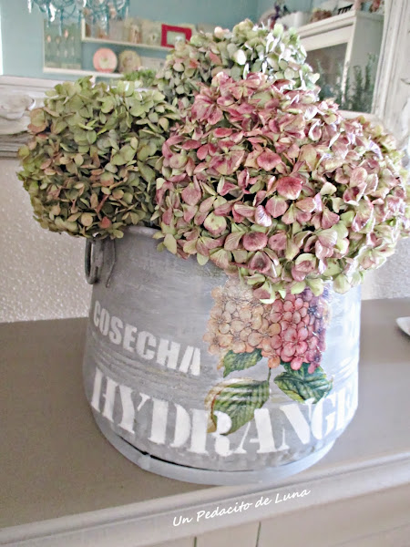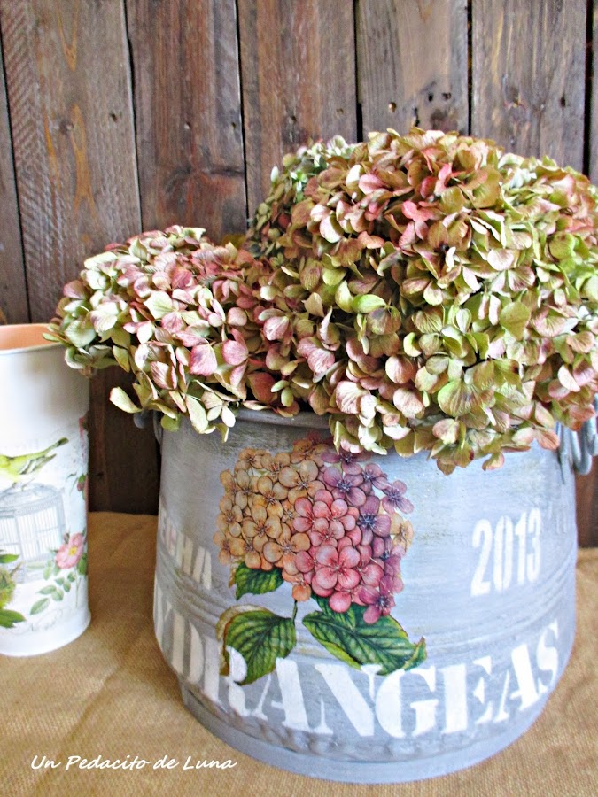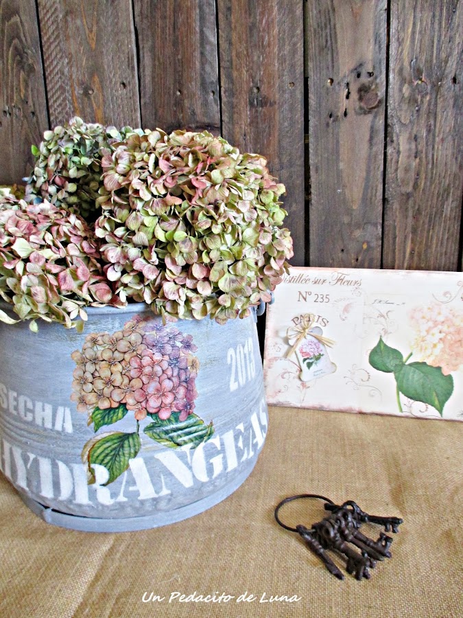 A continuación, una servilleta de hydrangeas que tenía en casa y que le venía fenomenal.....