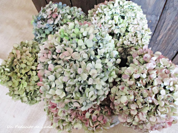 estas hortensias están secas, hay muchas plantas y flores frescas en la tienda....