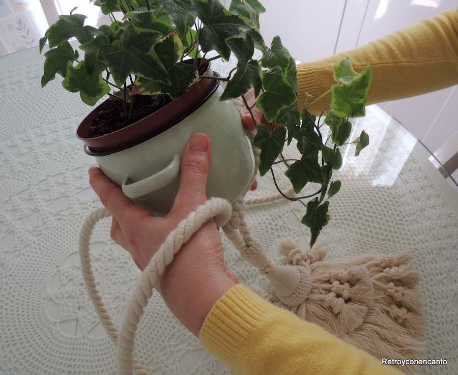 Pero esta vez sí nos visitaron las musas... Llevamos mucho tiempo queriendo hacer o hacernos con un colgador de macramé para plantas. ¿Y si nuestro alzapaños sirviera para este fin?