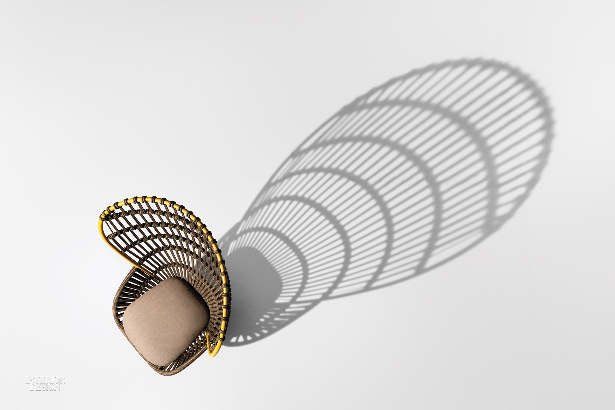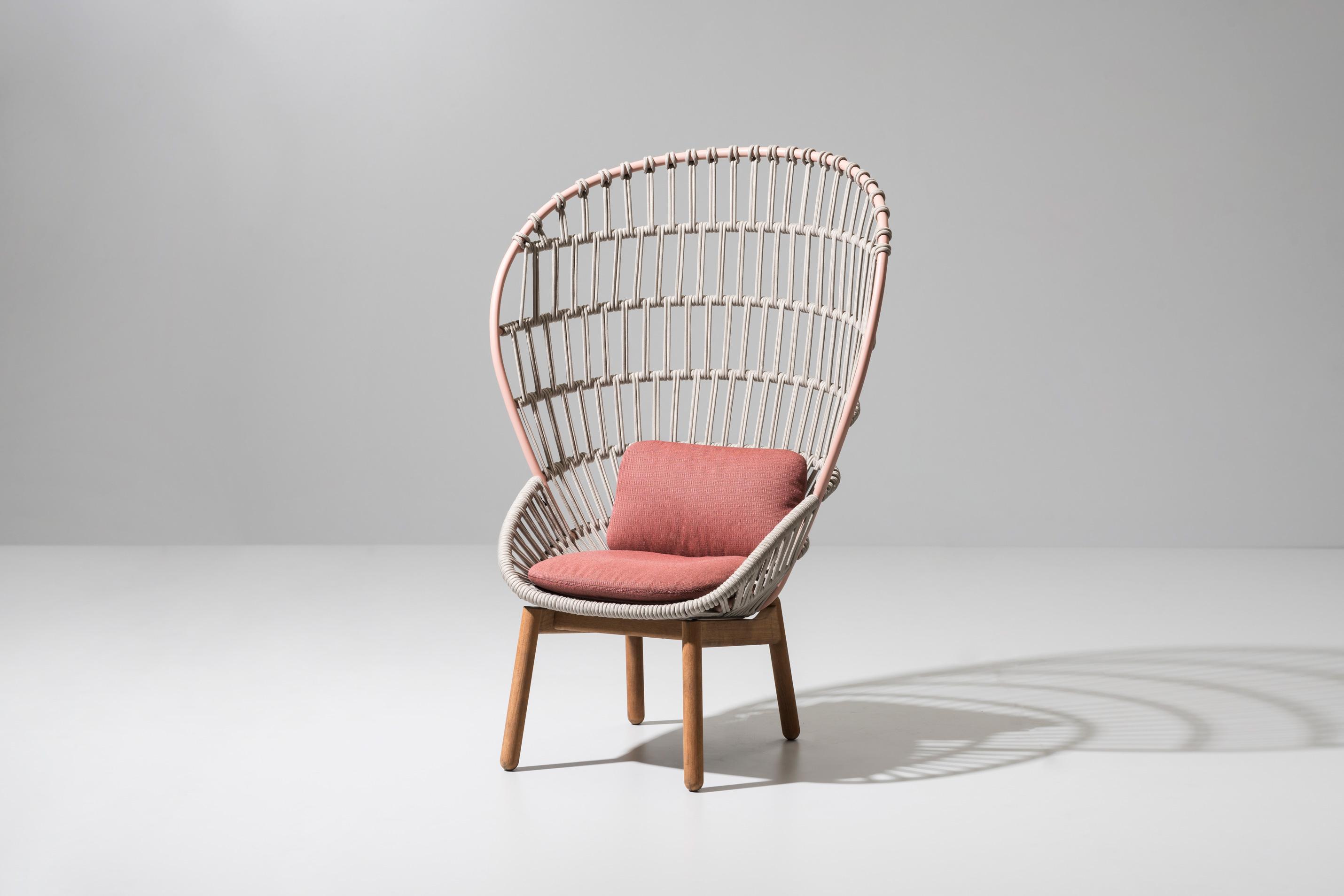 Cala is a high backed armchair inspired by the iconic Emanuelle. The chair has a majestic spatial pr esence with transparent and light surfaces. The open weave of the rope provides a latticed window for visual privacy while maintaining a connection to the natural elements.