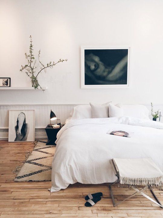 Las imágenes tienen en común la ausencia de cabeceros, un mobiliario sencillo en mesillas o taburetes y complementos muy naturales (maderas, plantas y focos).