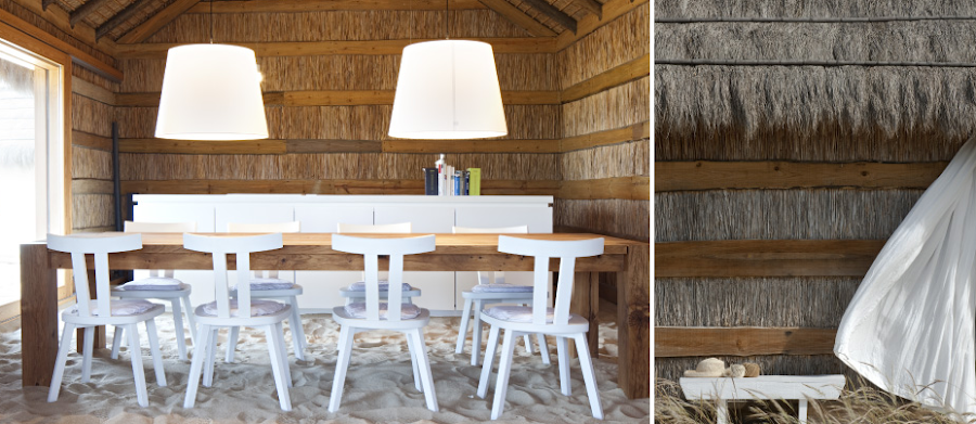 La sencillez de los materiales nos ha encantado, pero de todo nos quedamos con ese suelo de arena?me imagino pasar unos días de verano descalza y sin hacer nada?Mirando al mar y paseando?incluso en casa. Un plan perfecto.