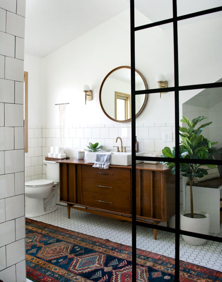 Cómo podéis ver en las imágenes inferiores el baño estaba totalmente pasado de moda y con un aspecto muy deteriorado. Así que su propietaria decidió darle una renovación total. Azulejos de pared, embaldosado de suelos, sanitarios, mobiliario, textiles, iluminación. Una reforma no apta para todos los bolsillos pero con un resultado increíble (Si vuestro presupuesto es más escaso en estos 3 antes y después lowcost de un baño os pueden encajar mejor)