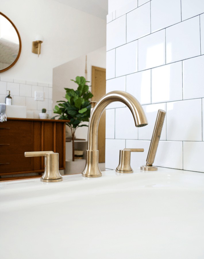 Del mismo metal se ha elegido la grifería. Y por supuesto también de aire retro.