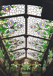 Además del diseño de los edificios arquitectonicamente hablando , Gaudí también diseñaba los muebles , la decoración de las paredes , de los cristales , espejos , etc... todo diseñado desde la imaginación en la aplicación de la naturaleza tanto en las paredes como en la decoración de las cristaleras y el mosaico.
