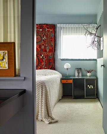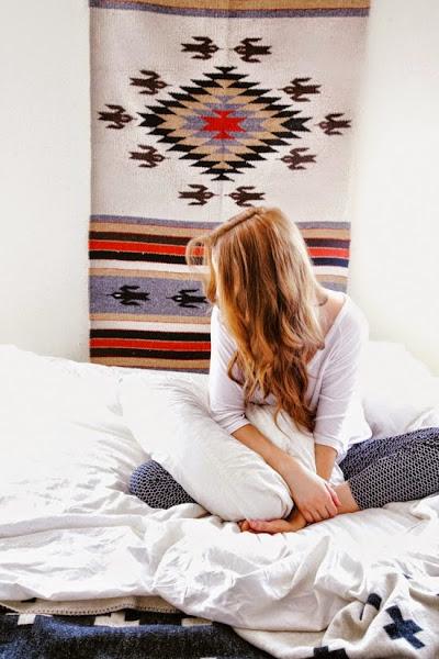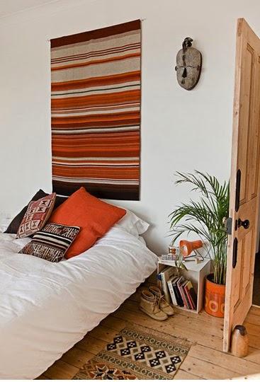 En mi caso he estado buscando inspiración para mi dormitorio. Este otoño quiero darle un toque diferente y he encontrado una idea que me gusta. Considero que es una idea decó fantástica si te gustan las habitaciones "limpias", minimalistas y sobrias (que no aburridas) en decoración... El máximo protagonista del dormitorio no sería otro que...... un tapiz para el cabecero