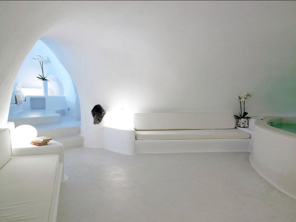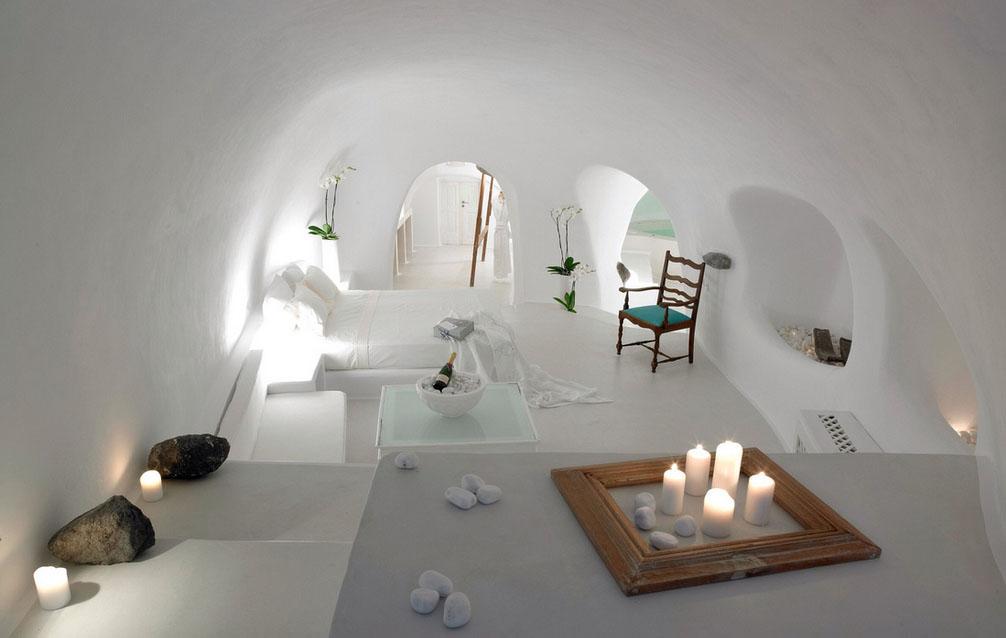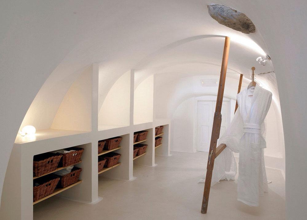 Este hotel que en principio fue una vivienda privada, ha sido restaurado tras varios años de trabajo para poder preservar la autenticidad de la estructura. Arquitectos y artesanos de la zona recrearon el estilo arquitectónico tradicional de Santorini, integrando al diseño cada uno de los elementos originales de la cueva y utilizando en su construcción materiales 100% ecológicos y naturales.