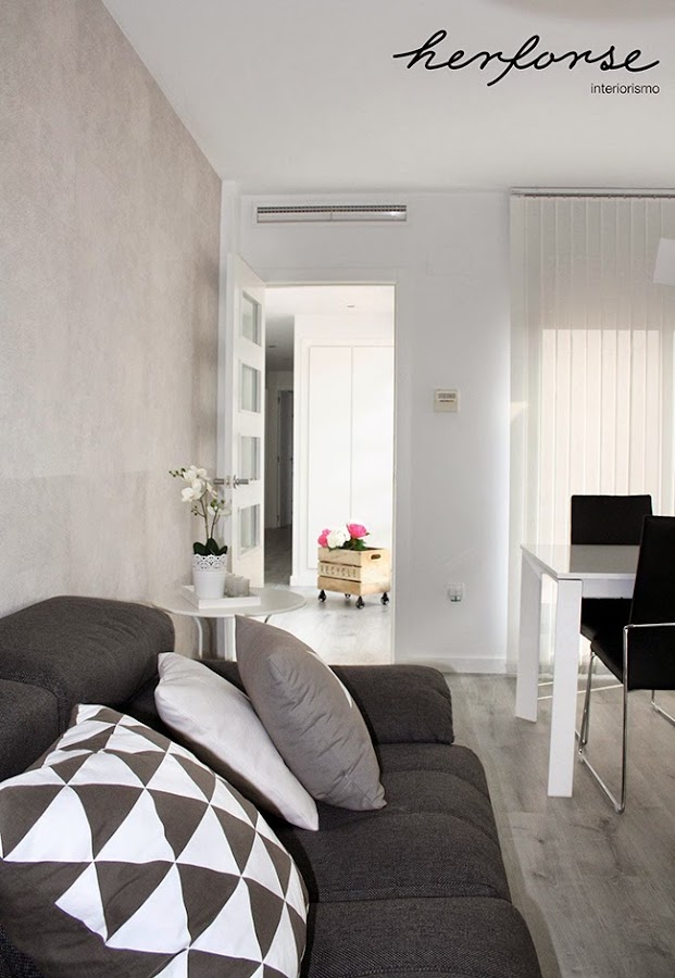 Sara tiene un piso precioso, con mucho encanto nórdico que ha decorado ella misma a través de colores neutros en la gama de los grises y pequeñas pinceladas en madera y mint.