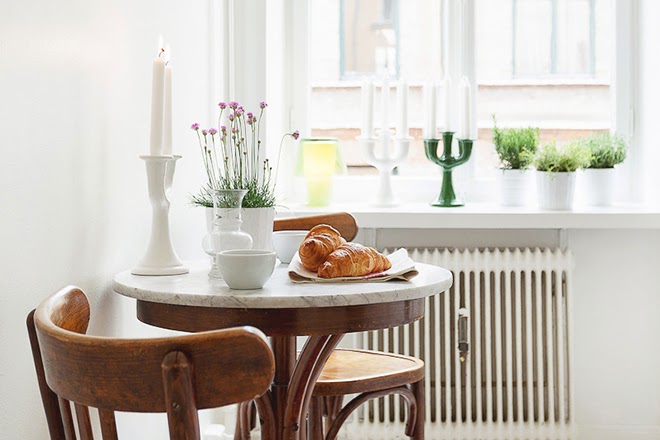 Un rincón en el que coger fuerzas, respirar y empezar el día con buen pie. Unas sillas con historia, unos candelabros nuevecitos y el maravilloso placer de un croissant recién hecho. En resumen, el lugar perfecto para el desayuno del lunes y dar comienzo a una nueva semana.