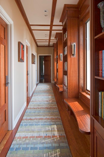 Si el efecto que buscamos es alargar el pasillo es sencillo conseguirlo con alfombras de rayas a lo largo de todo el pasillo.