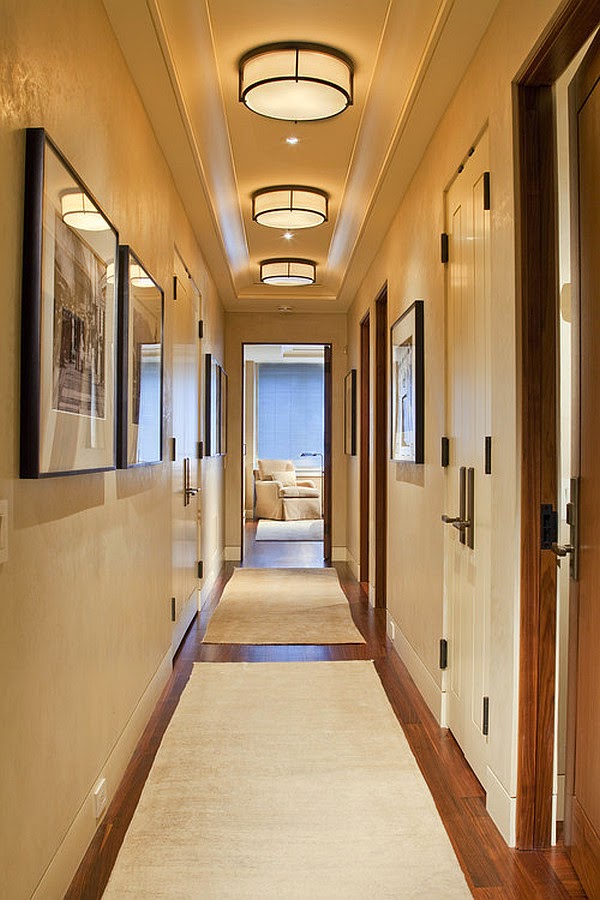 Podemos jugar con la iluminación, con un foco de luz de mayor tamaño en el centro del pasillo nos dará la sensación de haberse acortado.