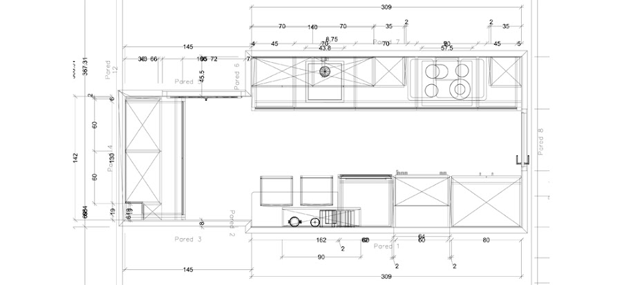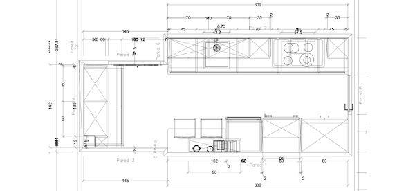 En la zona de la antigua cocina ocupamos ambos lados con dos lineales.