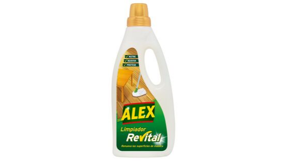 - Para una limpieza más a fondo, puedes usar Alex Revital, que devuelve el brillo natural a la vez que limpia. Recupera poco a poco el aspecto original del suelo y evita el cuarteamiento y retrasa su desgaste.