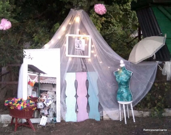 Antes que nada, agradecer de corazón al cincuenta por ciento de Retro y con encanto que, desde el momento uno, se prestó a colabora en todo, y que, pese al terrible y agotador calor que tuvimos esos días, estuvo al pie del cañón ideando y ayudando con la decoración del lugar.
