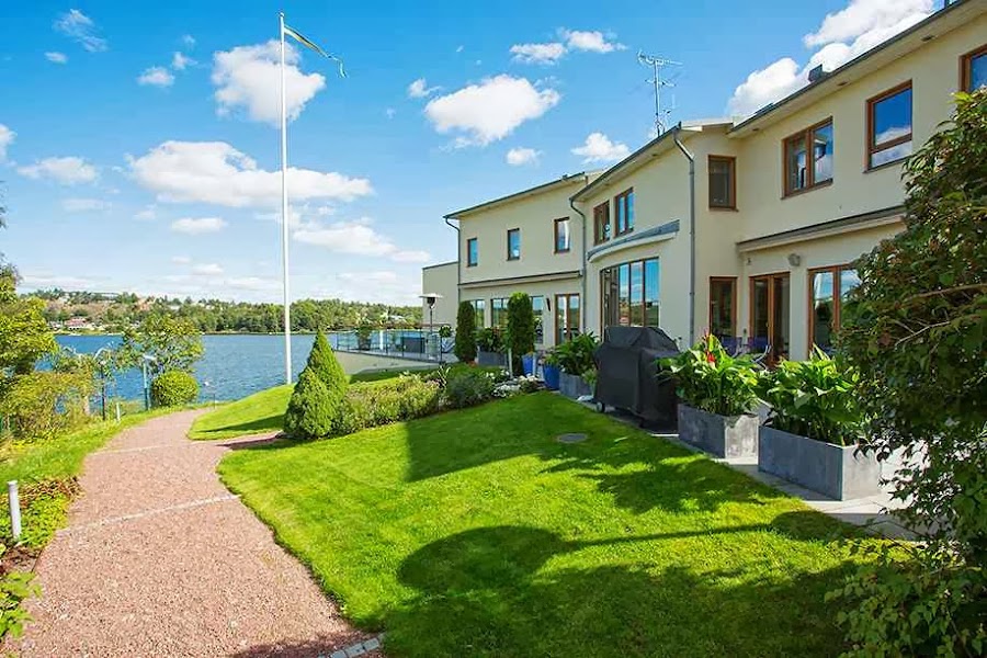 Bahía de Edsviken, Suecia, un idílico lugar con unas vistas privilegiadas, un paraiso soñado por muchos y disfrutado por pocos. Una urbanización al abrigo de miradas indiscretas con enormes villas rodeadas de jardín privado. Como soñar es gratis, de momento, será cosa de recrearnos la vista con estas vistas de ensueño desde una casa donde la vida de la familia se hace en el exterior, no es de extrañar!!!