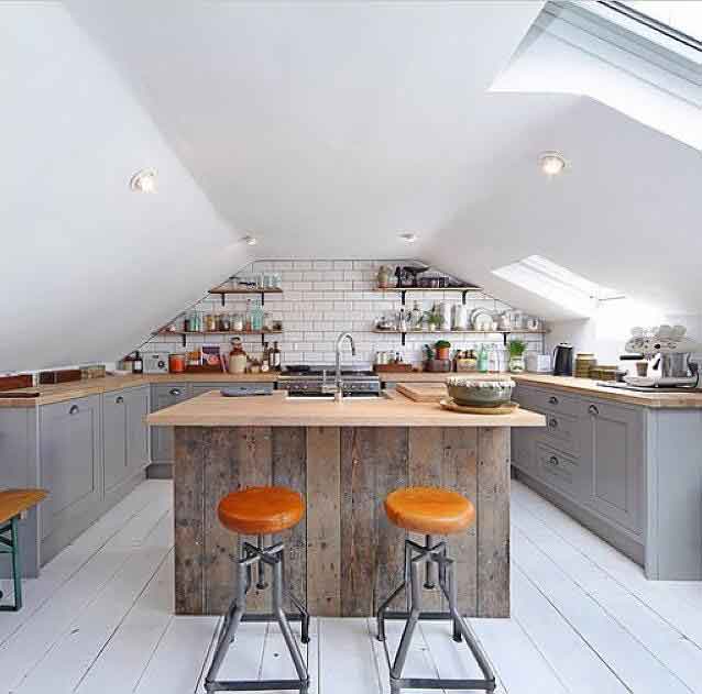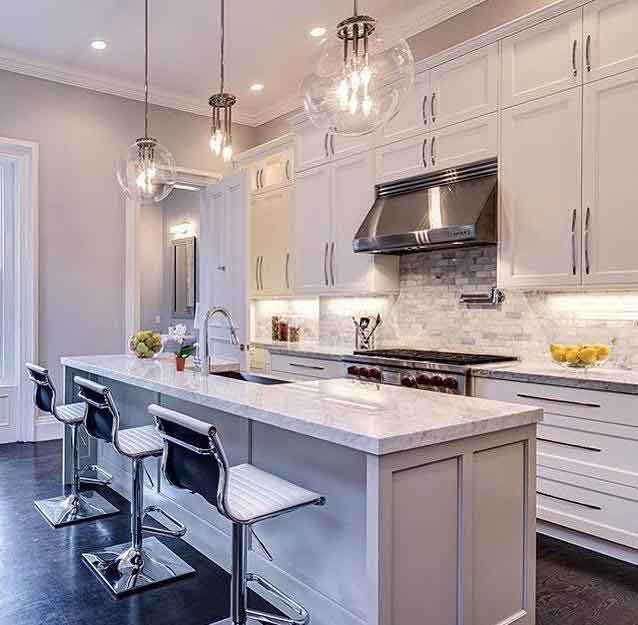 Y la cocina que debe de tener una iluminación general y se consigue con focos o lámparas de techo. Con una luz cálida.