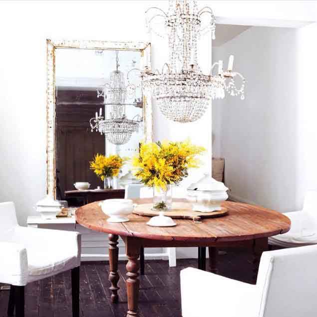 La medida que va de la lámpara de techo a la mesa, oscila entre los 70 y 80 cm.