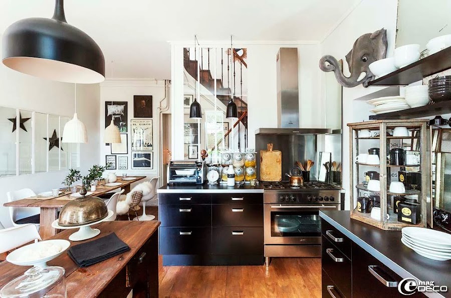 Como ya sabéis, en La Musa somos muy fans de los espacios chic & glam con aires femeninos. Pero en esta ocasión no nos hemos podido resistir a la elegancia masculina de este salón-comedor y cocina "casi" integrada. La siempre acertada y sofisticada combinación black & white junto a muebles iconos del diseño y los detalles vintage, hacen de este espacio un interior ecléctico donde predom ...