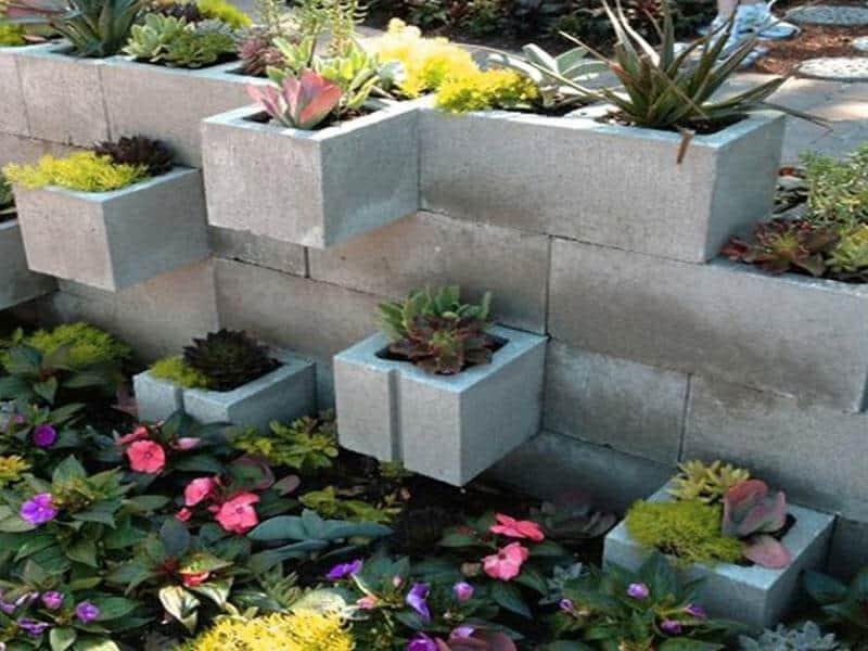 Si estás buscando una solución de almacenamiento creativa y económica, los bloques de cemento son una excelente opción. Puedes apilarlos en diferentes configuraciones para crear estanterías modulares, adaptadas a tus necesidades y preferencias. Además, también pueden utilizarse como divisores de espacios, permitiendo delimitar áreas en una habitación sin obstruir completamente la vista y manteniendo una sensación de amplitud.3- Jardines verticales:
