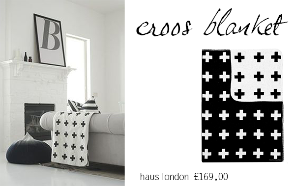 La cruz, en Suecia, es símbolo de esperanza. La diseñadora de esta manta de algodón de Perú es Pia Wallén. La podéis encontrar en naranja, negro y gris, siempre reversible con el blanco.