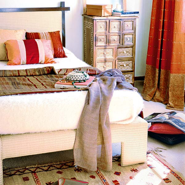Combinación de alfombras bereberes, preciosos muebles de madera tallados a mano, mobiliario de forja, la artesanía del cuero que nos inunda con sus olores y colores...todo un mundo de sensaciones y placeres maravillosos.