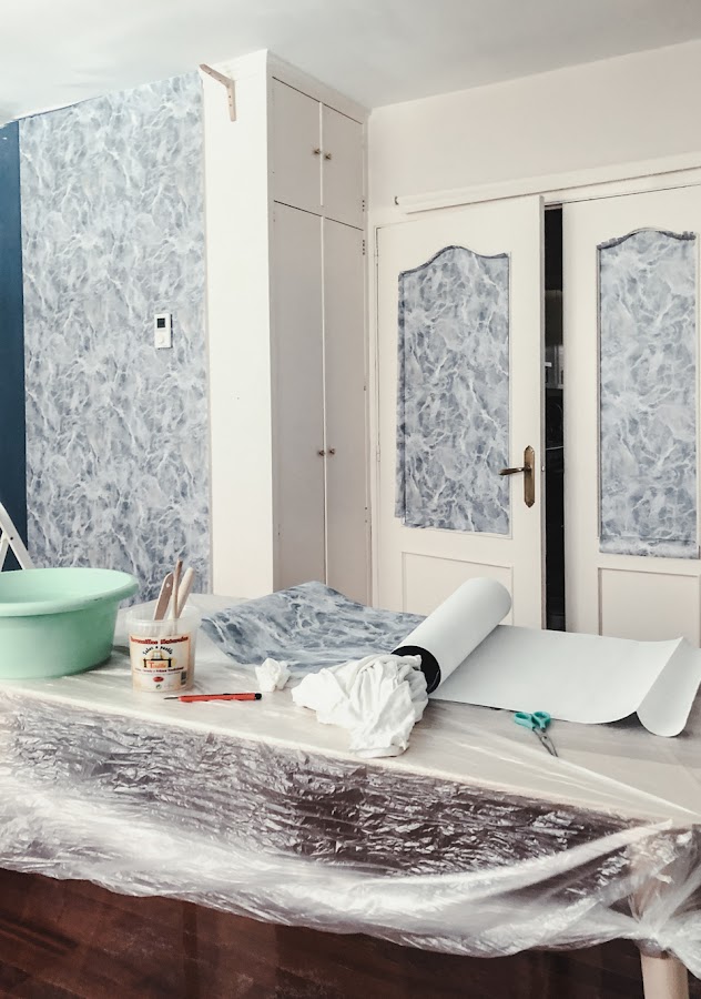 Como comprobaréis también empapelé los cristales de la puerta doble